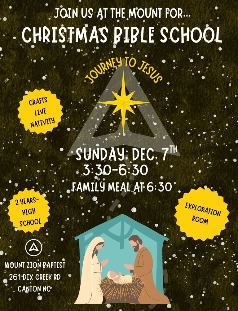 Meet us at the Mount on December 7th for Haywood County's only Christmas Bible School!