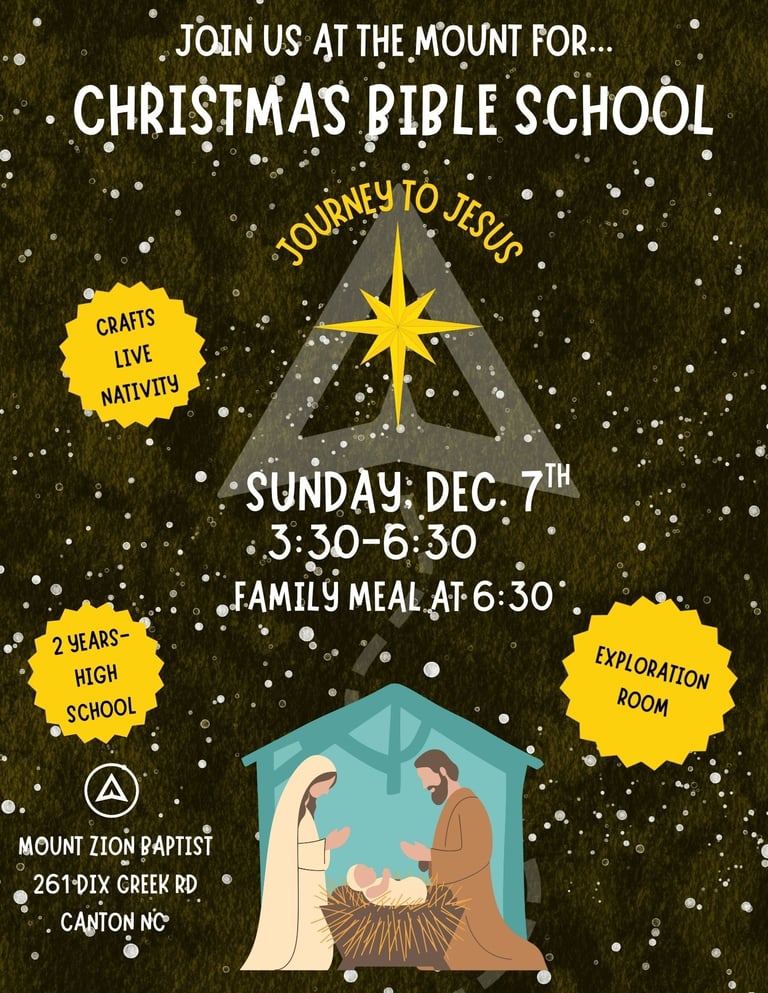Meet us at the Mount on December 7th for Haywood County's only Christmas Bible School!